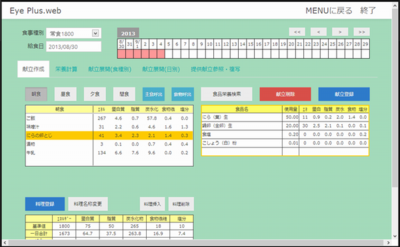 クラウド型給食管理システム「Eye Plus .web」は、インターネット上を経由してご利用頂く栄養管理ソフトです。栄養士様の日々の給食管理業務をサポートして、円滑な業務遂行をお手伝いします。システムに予め収載されているオリジナル献立を利用することもできます!