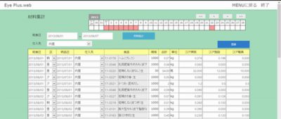 【帳票】 ”検食簿””検収表””日報””月間食品別材料費一覧表””業者別仕入金額一覧表”
