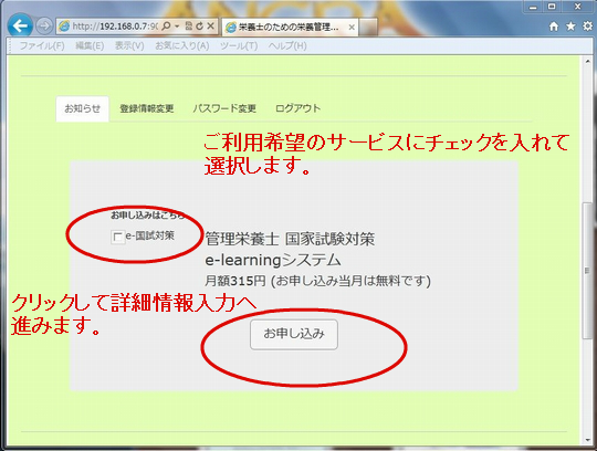 選択した内容に問題が無ければ、「お申し込み」ボタンをクリックして次に進みます。